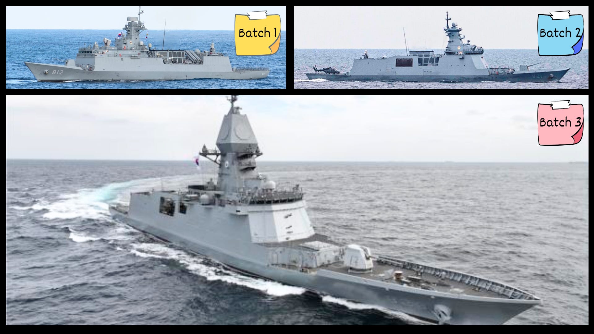 FFX Batch 2 represented a significant upgrade within the same basic hull form, as the hull was enlarged to 3,600 tons while adding a 16-cell vertical launch system (VLS), towed array sonar, and hybrid diesel-electric propulsion.